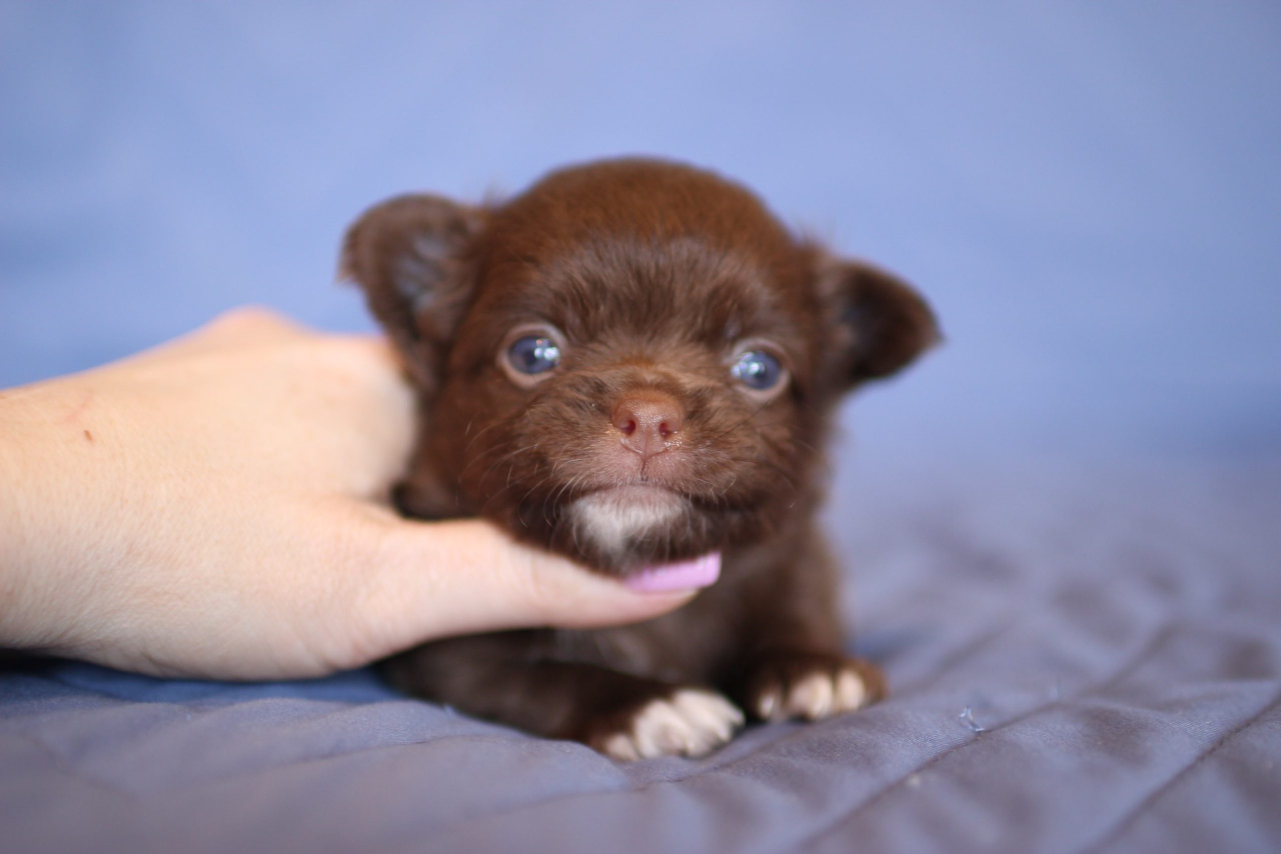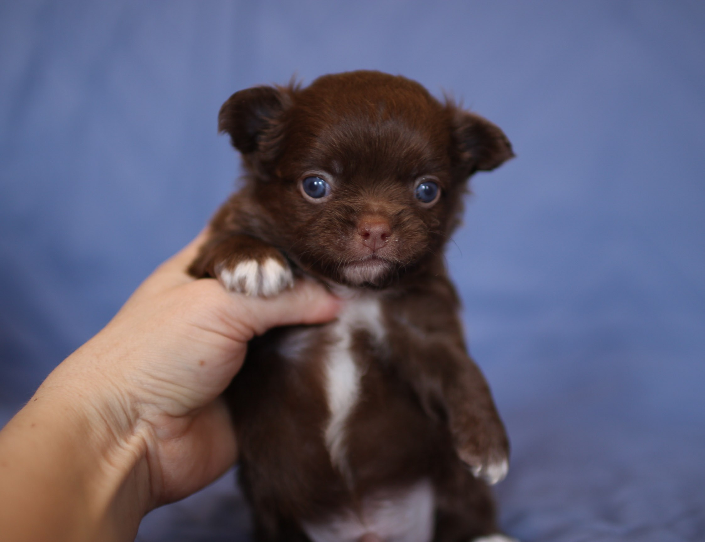 Мальчик чихуахуа длинношерстный, шоколадно-белого окраса. Документы РКФ (клеймо), ветпаспорт. Без недостатков. Продается как домашний любимец.